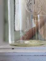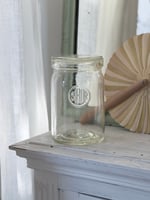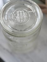 Bocal ancien en verre moulé, accompagné de son couvercle d’origine. Il est estampillé « SIBOR » sur la face, le couvercle, avec la mention « 1/2 litre » sous la base.