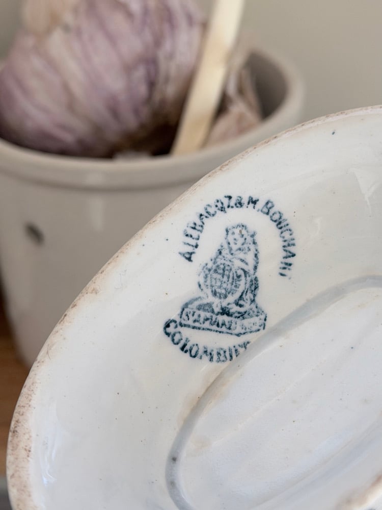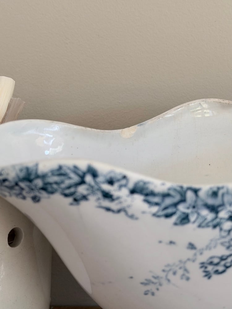 Saucière ancienne en terre de fer estampillée Saint-Amand.