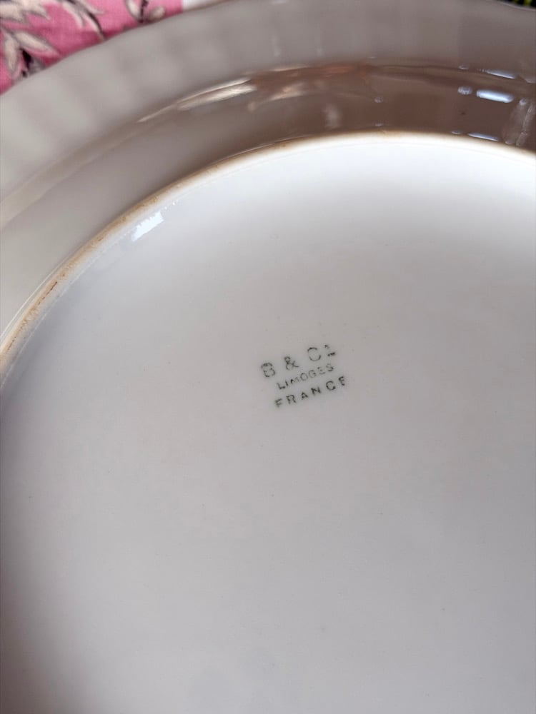 Superbe assiette en porcelaine fine de Limoges, portant l’estampille B & Cie – Limoges France.