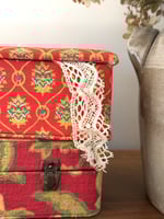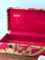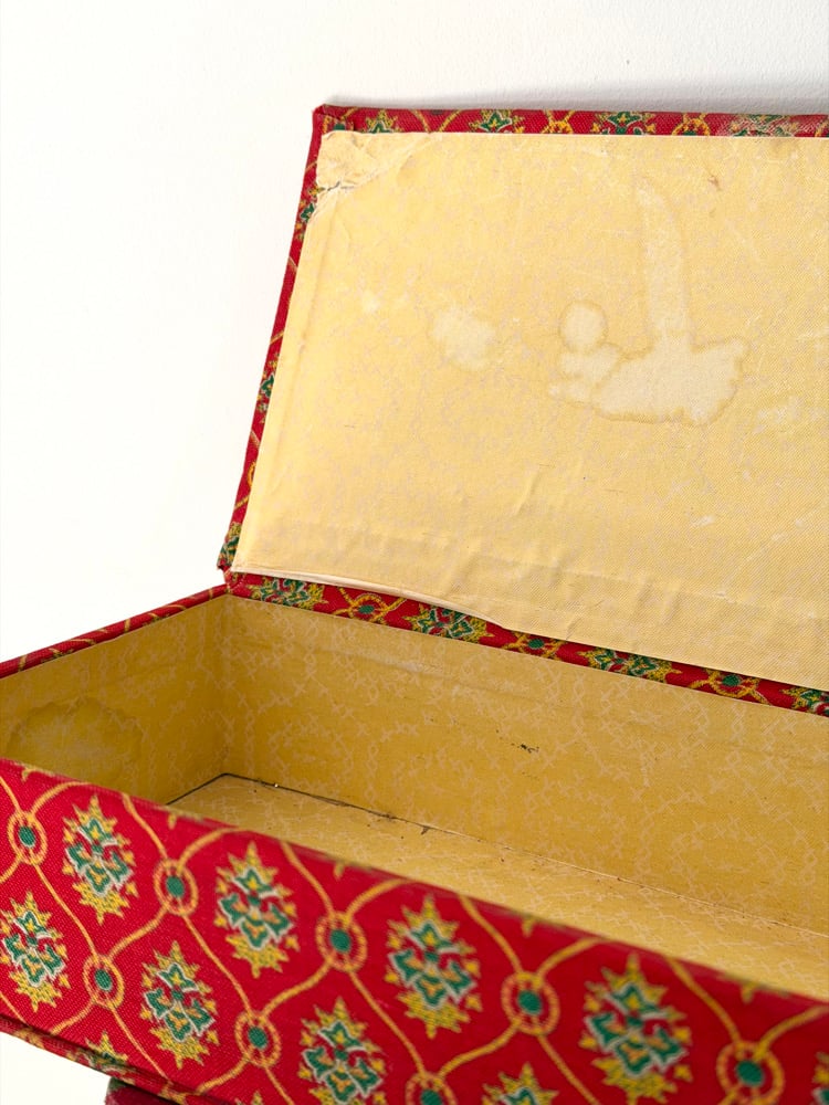 Charmantes boîtes anciennes aux superbes couleurs rouge, vert et or.