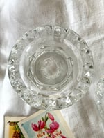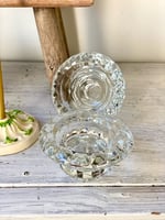 Paire de bougeoirs en verre pressé, au décor géométrique facetté.