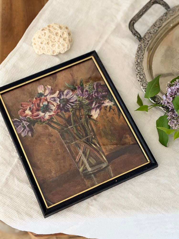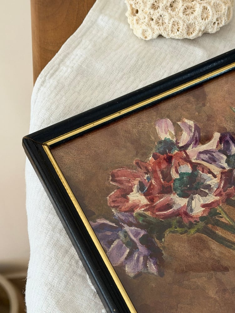 Aquarelle ancienne - bouquet d’anémones