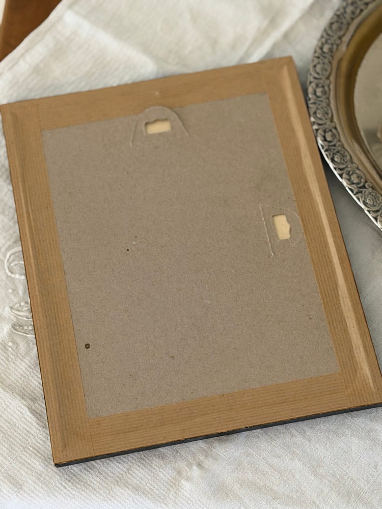L’ensemble est mis en valeur par un cadre noir souligné d’un filet doré, sobre et élégant.