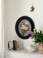 Présentée dans un cadre ovale noir de style Napoléon III.