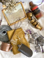 Ils sont emballés dans du linge et joliment ficelés (fleur séchée, carte ancienne, ruban).