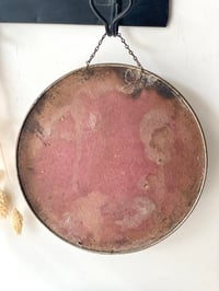 Cadre ancien de forme ronde, en cerclage d’acier patiné, avec sa chaînette d’accrochage d’origine.