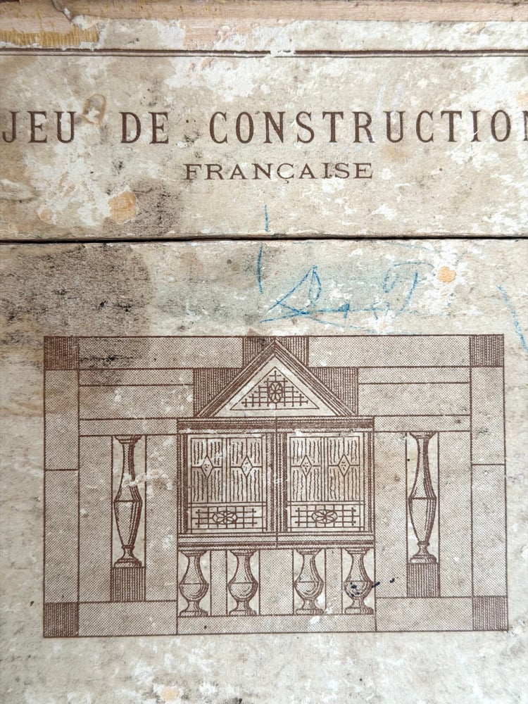 Jeu de construction ancien français, présenté dans sa boîte d’origine.