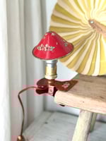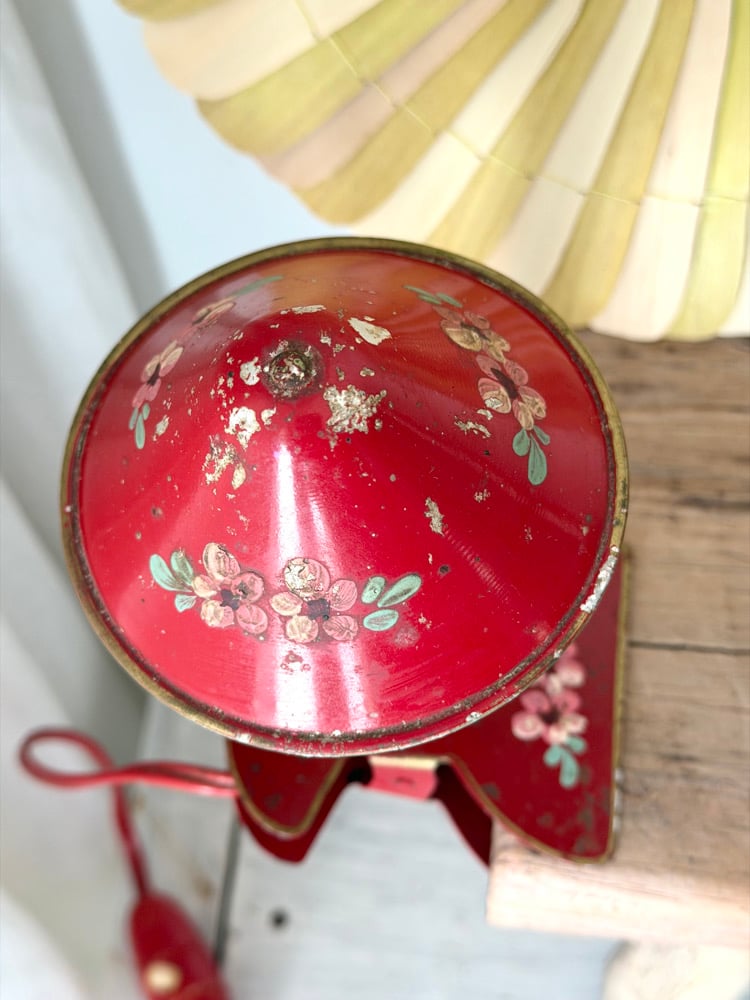 Charmante lampe champignon en métal peint, avec un décor floral d’origine typique des années 50/60.