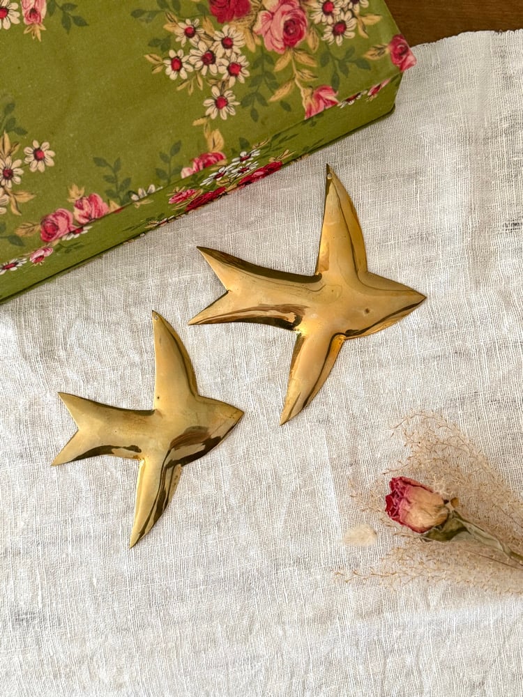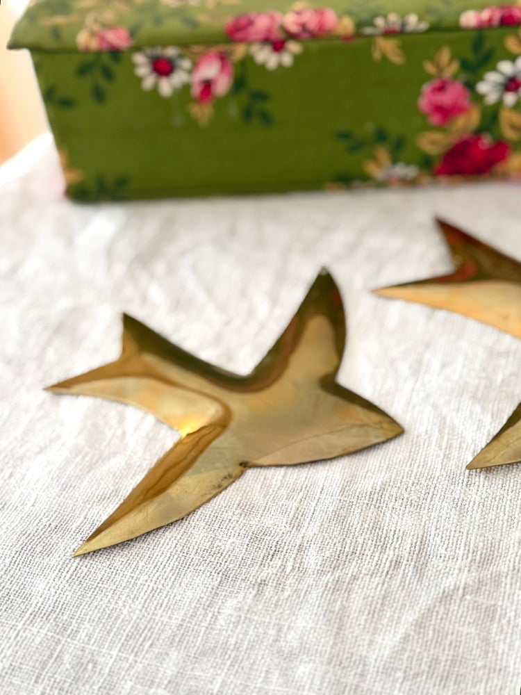 Paire d’hirondelles décoratives en laiton, au dessin fin et épuré.