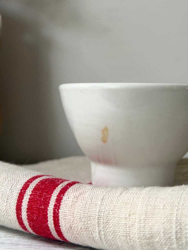 L’ensemble est en faïence blanche brillante, typique de la vaisselle de cuisine du milieu du XXe siècle.