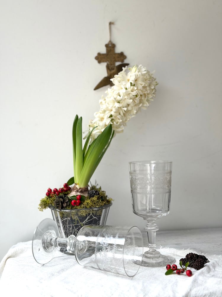 Verres à pied anciens gravés - lot de 7